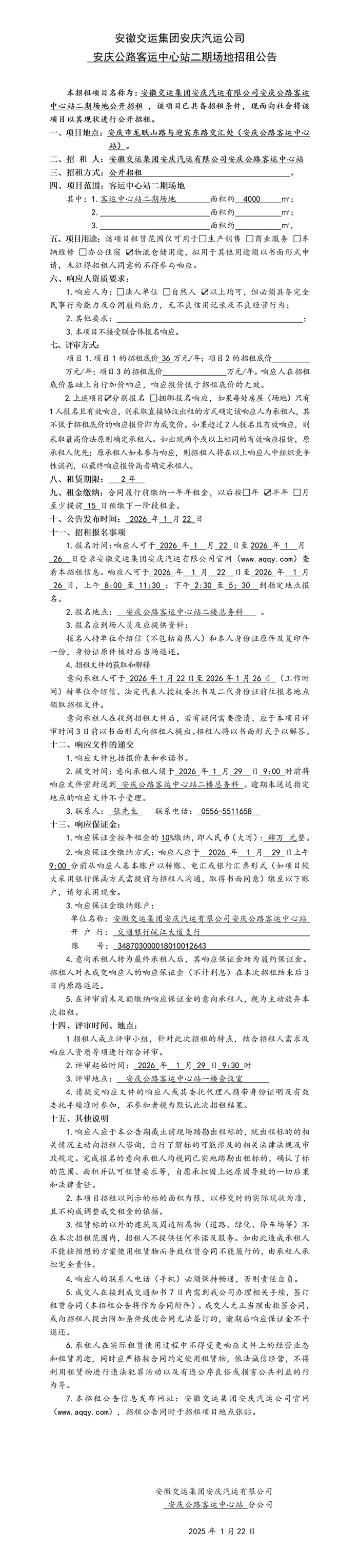 安慶公路客運(yùn)中心站二期場地招租公告